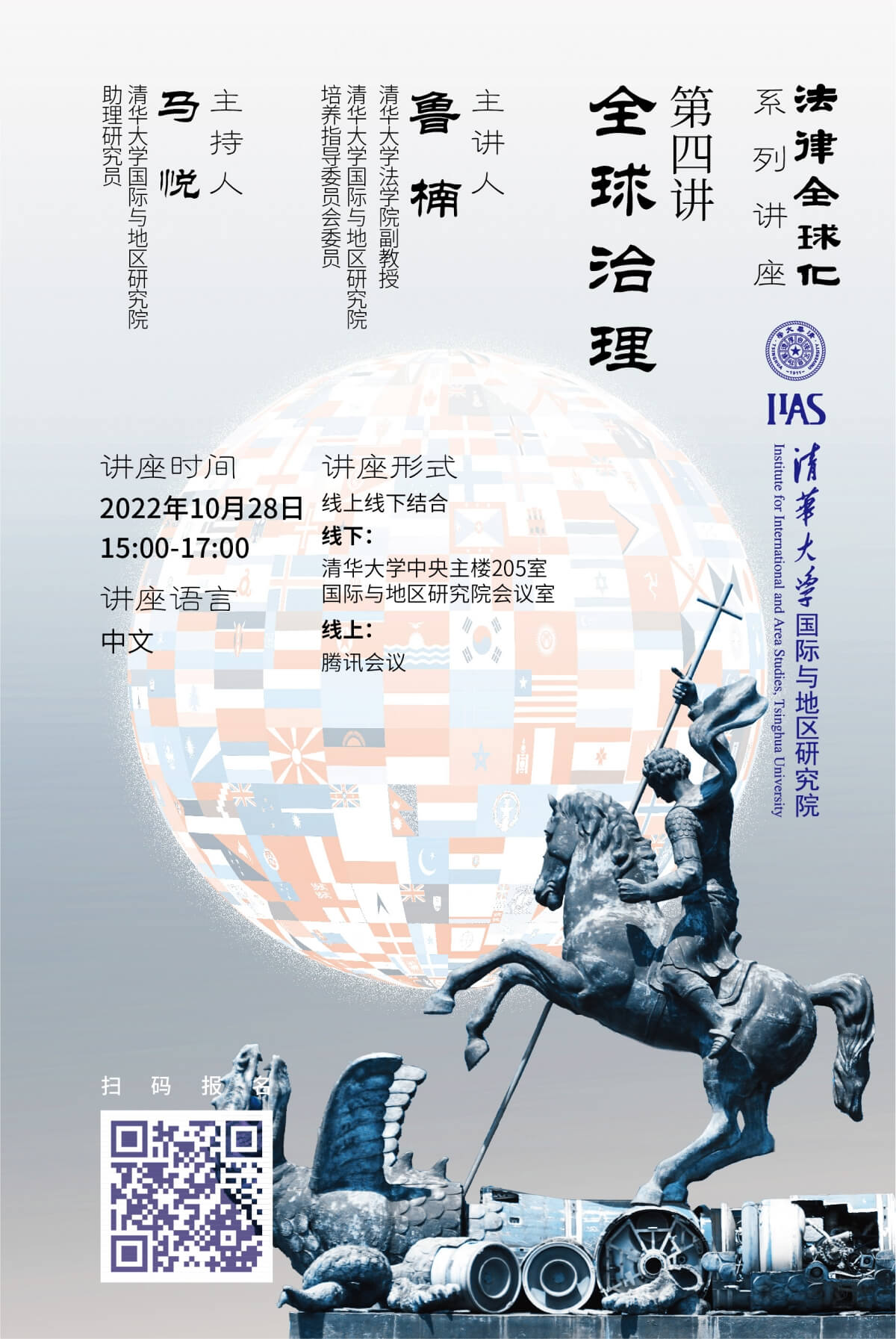On the afternoon of October 28, 2022, the Institute for International and Area Studies (IIAS) for Tsinghua University hosted the fourth lecture of the “Globalization of Law” Series for the fall semester at Room 205, Central Main Building. Themed “Global Governance,” the lecture was delivered by Lu Nan, Associate Professor of the School of Law, Tsinghua University and a member of the IIAS Teaching Committee, and was presided over by Ma Yue, Assistant Professor of IIAS. IIAS faculty members and doctoral students, scholars and students from outside the Institute at home and abroad, and others interested in the topic attended the lecture online or offline.