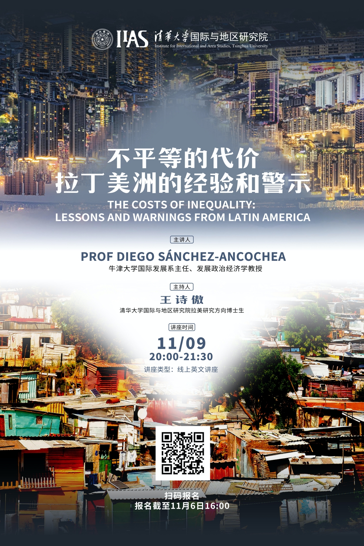 On the evening of November 9th, 2020, Prof. Diego Sánchez-Ancochea, Head of the Department of International Development and Professor of Development Political Economics of Oxford University, gave an online lecture titled “The Costs of Inequality: Lessons and Warnings from Latin America” to doctorate candidates at Institute of International and Area Studies, Tsinghua University (IIAS-THU) and scholars interested in Latin American studies from IIAS and beyond. More than 120 participants from home and abroad attended this event.