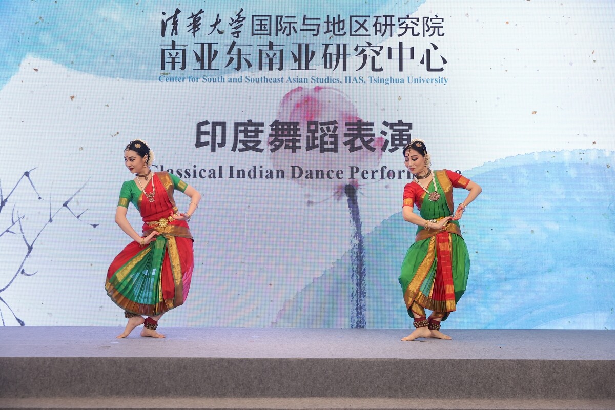 揭牌仪式结束后,中国印度舞舞蹈家金珊珊和青年舞者吴景茜以一支婆罗多舞,将与会嘉宾带入神秘的梵音古国,以印度传统舞蹈的深邃魅力展现了南亚东南亚的区域特色。