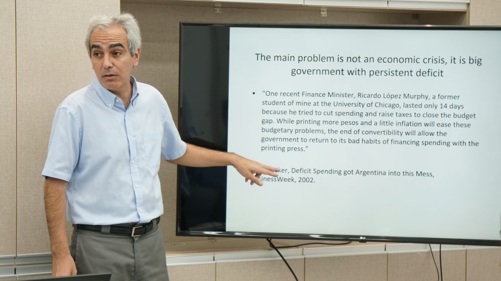 最后,Julio Elías教授还对阿根廷的经济现状进行了解读,他指出阿根廷的问题不在于现有的经济危机,而在于政府介入市场过多并且财政赤字居高不下的事实,而这才是需要解决的关键。