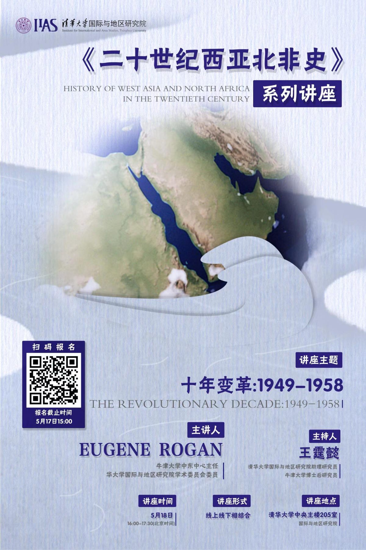 • 2021年5月18日下午,h图书馆 学术委员会委员、牛津大学中东史教授尤金·罗根在线上为h图书馆 和国内外知名高校师生带来了“二十世纪西亚北非史”系列讲座的第七讲,主题为:“十年变革:1949-1958”, 地区研究院助理研究员王霆懿主持了讲座。