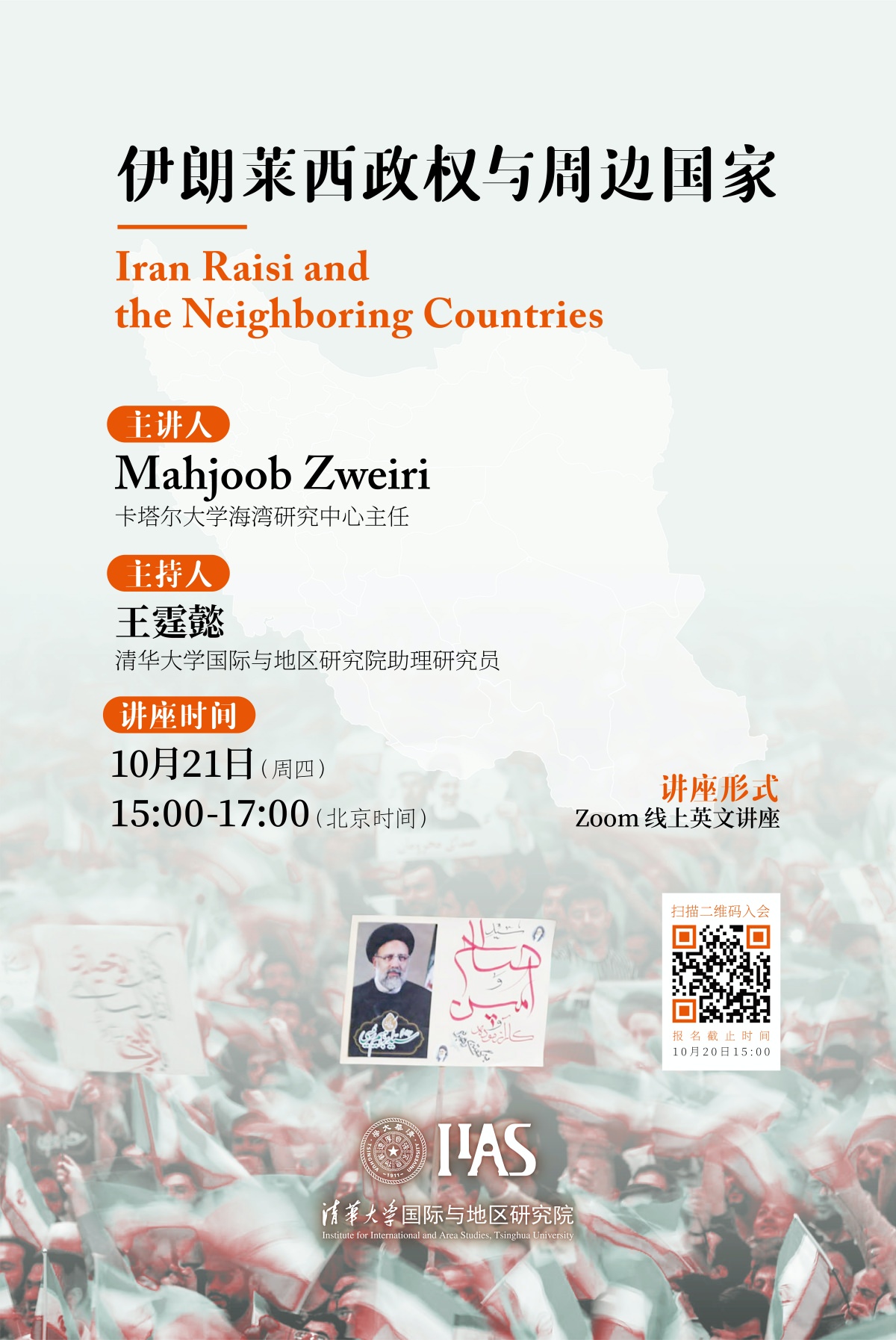 师生及校内外学者在线分享了主题为“伊朗莱西政权与周边国家”的讲座。本讲也是地区研究院2021年秋季学期中东系列讲座的第三讲,地区研究院助理研究员王霆懿主持了讲座。