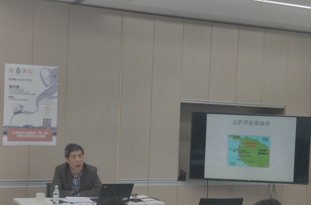 讲座伊始,董经胜老师表示,2021年和2022年陆续迎来中国和拉丁美洲多国建交五十周年纪念日,回顾半个世纪以来中国和拉丁美洲国家关系发展的历程,总结和反思历史的经验与教训具有现实意义。以中国和墨西哥关系为例,本讲主要围绕16世纪到19世纪初的马尼拉大帆船贸易、19世纪末到20世纪初墨西哥华工华商的发展与处境和当前中墨经贸关系这三个部分,展开讨论两国发展历史中的问题。16世纪下半叶,西班牙开辟了横跨太平洋,连接美洲和亚洲的马尼拉大帆船贸易路线,东连菲律宾马尼拉,西接墨西哥阿卡普尔科。1573年,丝绸、瓷器等中国货物首次通过马尼拉大帆船贸易航线运往墨西哥。由此,中国和美洲以菲律宾为纽带建立了间接的经济联系,推动了海上丝绸之路的形成。1899年,中墨两国正式签署《中墨和好通商行船条约》,两国首次建立外交关系。墨西哥的华人华侨持续逐年增多,渐渐地从铁路修建、采矿和种植园劳作的华工演进为从事小规模工商业活动的华商。20世纪80年代以来,中墨两国相继实行经济开放和自由化政策。整体来看,两国贸易增长迅速,同时存在不足,墨西哥在与中国的双边贸易中存在较大赤字。对此,董经胜老师进行了多维度的剖析,同时表示未来中墨经贸合作的潜力巨大。