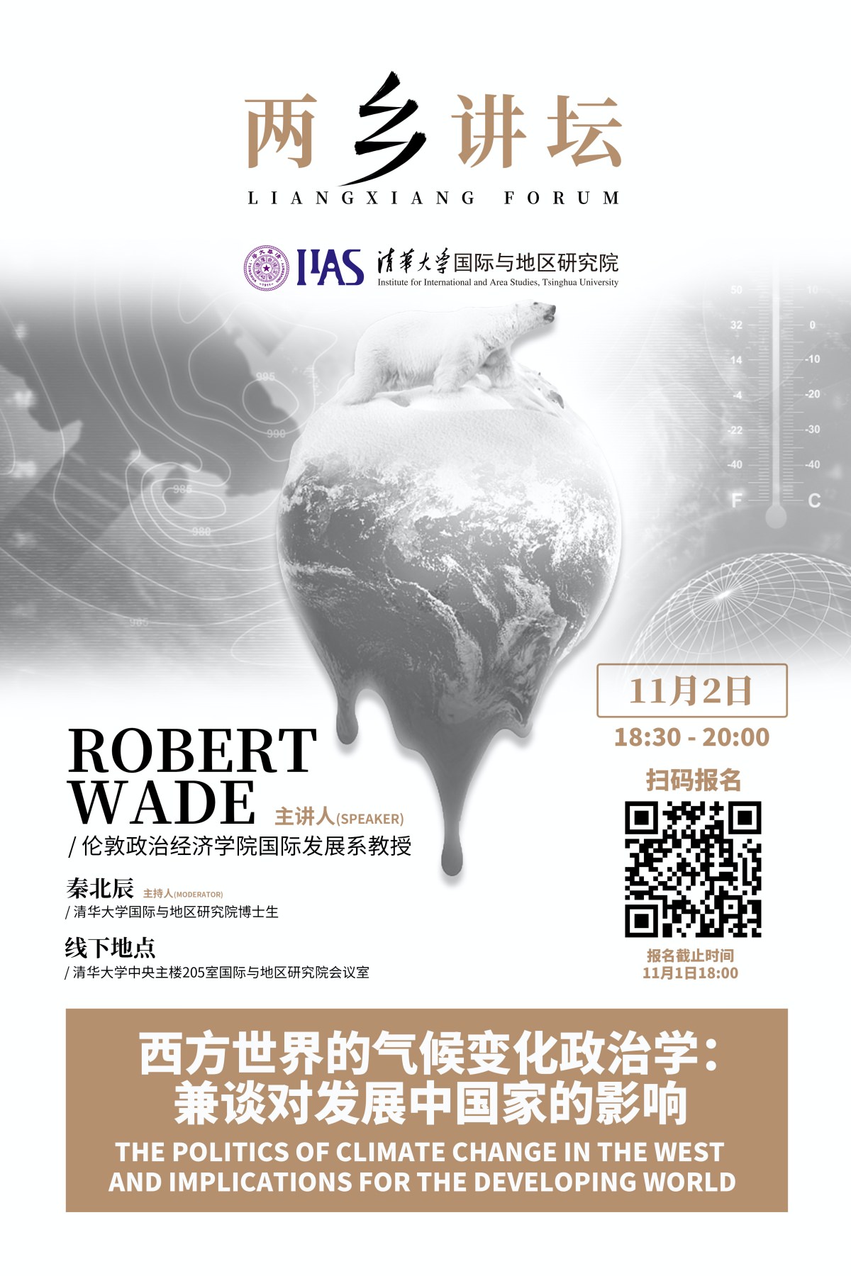 (IIAS)2021年秋季学期“两乡讲坛”第四讲在线上线下同步举行,主题为“西方世界气候变化的政治学:兼谈对发展中国家的影响(The Politics of Climate Change in the West and Implications For the Developing World)”。本次讲座由伦敦政治经济学院(LSE)国际发展系教授罗伯特·韦德(Robert Wade)主讲,h图书馆