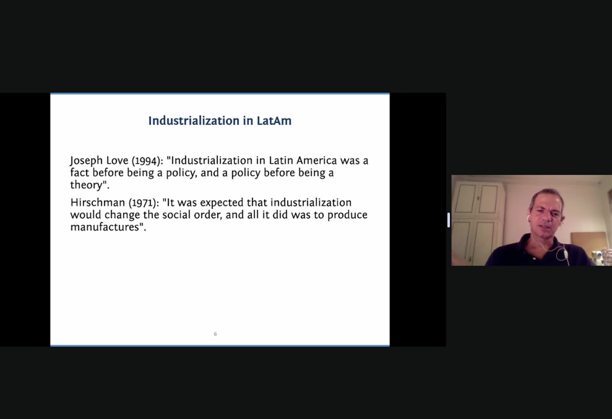 主办的《拉丁美洲经济史及其发展》系列讲座迎来第六讲,讲座主题为“拉丁美洲内向型工业化的成就与局限(1950-1970)”。本系列讲座主讲人是阿根廷迪特拉大学历史和社会研究系教授卢卡斯·拉齐(Lucas Llach),本系列讲座主持人是地区研究院博士后研究员袁梦琪。