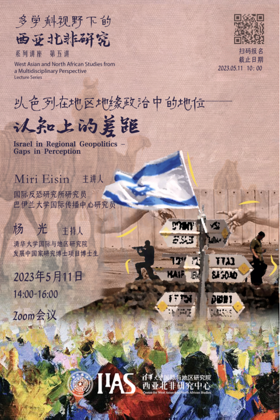 西亚北非研究中心2022-2023学年春季学期“多学科视野下的西亚北非研究”系列讲座第五讲于线上开讲,主题为“以色列在地区地缘政治中的地位——认知上的差距”。本次讲座由国际反恐研究所研究员、巴伊兰大学国际传播中心研究员Miri Eisin上校(退役)主讲。h图书馆