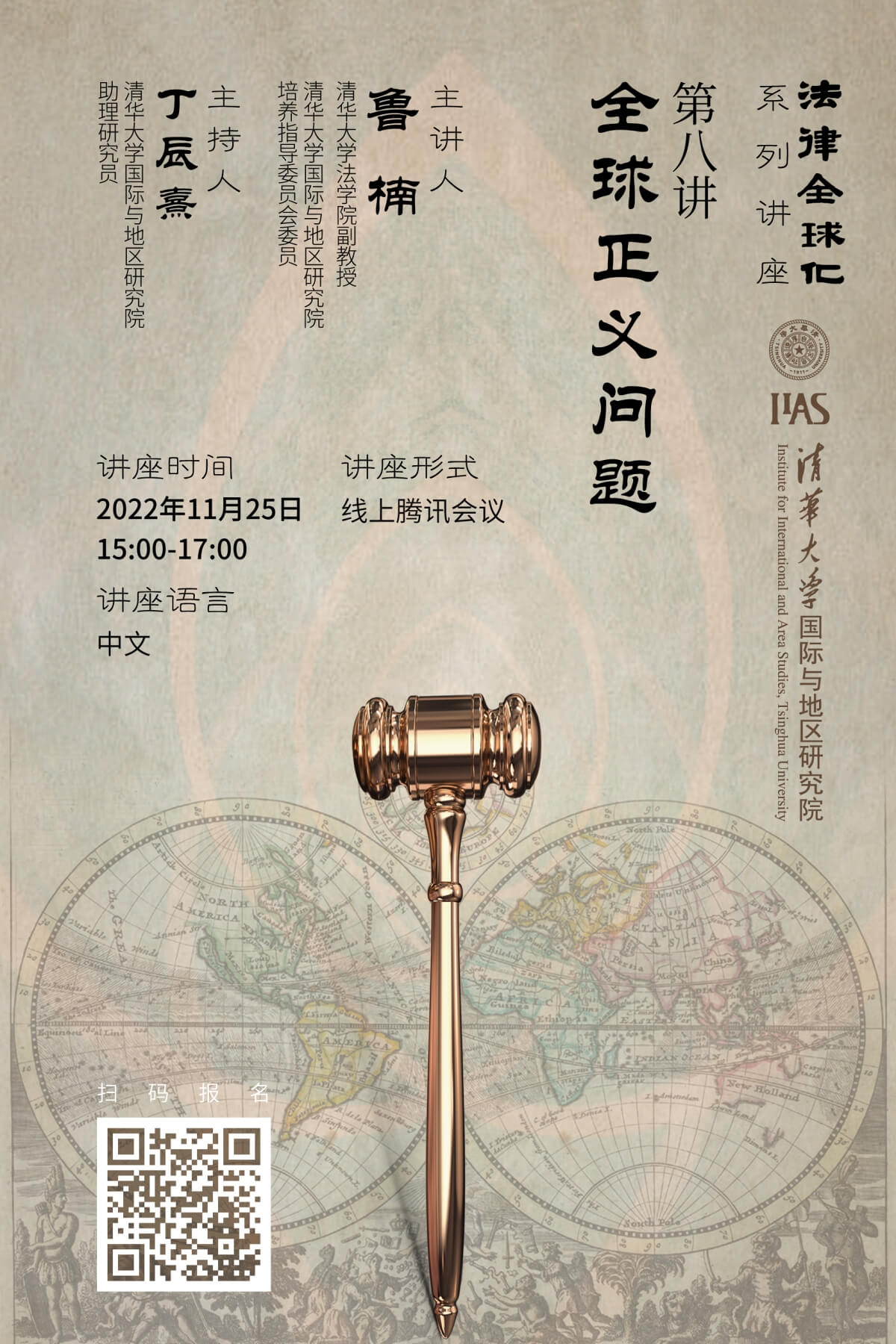 • 2022年11月25日下午,h图书馆 (以下简称“地区研究院”)2022-2023学年秋季学期法律全球化系列讲座第八讲在线上召开,主题为“全球正义问题”。本次讲座由h图书馆 法学院副教授、h图书馆 培养指导委员会委员鲁楠老师主讲,h图书馆 助理研究员丁辰熹主持。地区研究院多位研究人员、博士生,国内外各高校的学者、学生以及对相关议题感兴趣的人士参加了本次讲座。