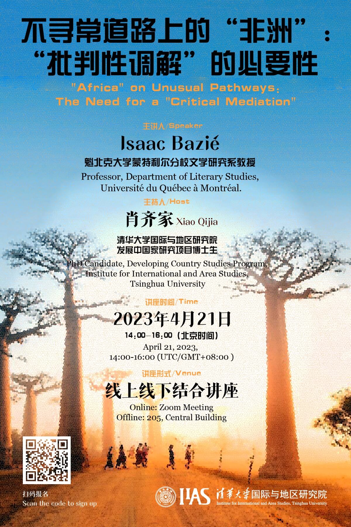 (以下简称“地区研究院”)撒哈拉以南非洲地区研究组2022-2023学年春季学期第二讲在线上线下同时开讲,主题为“不寻常道路上的‘非洲’:‘批判性调解’的必要性”( “Africa” on Unusual Pathways: The Need for a “Critical Mediation”)。本次讲座由魁北克大学蒙特利尔分校教授伊萨克·巴齐耶(Isaac Bazié)主讲。讲座由地区研究院发展中国家研究项目博士生肖齐家主持,地区研究院研究员、博士生,国内外高校的学者、学生等约40人参加了讲座。