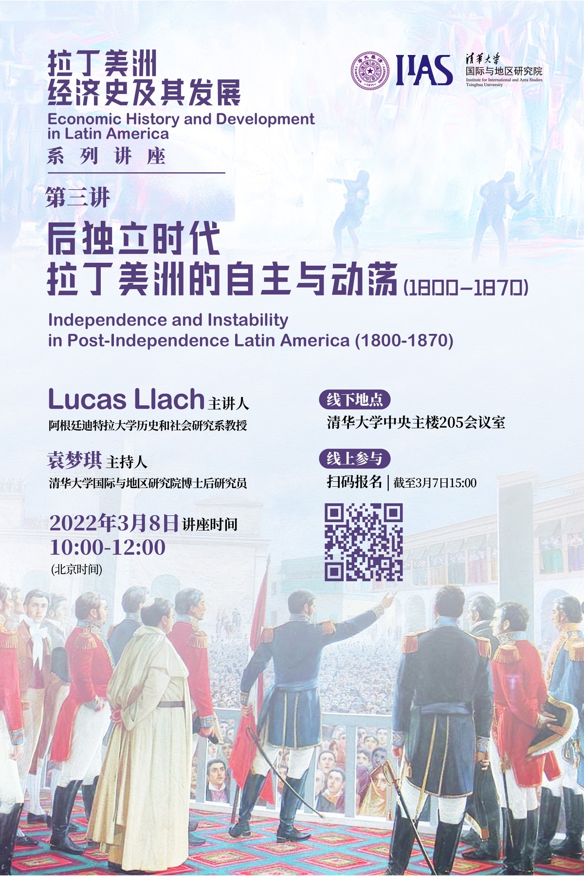 主办的《拉丁美洲经济史及其发展》系列讲座迎来第三讲,讲座主题为“后独立时代拉丁美洲的自主与动荡(1800-1870)”。本系列讲座主讲人是阿根廷迪特拉大学历史和社会研究系教授卢卡斯·拉齐(Lucas Llach),本系列讲座主持人是地区研究院博士后研究员袁梦琪。