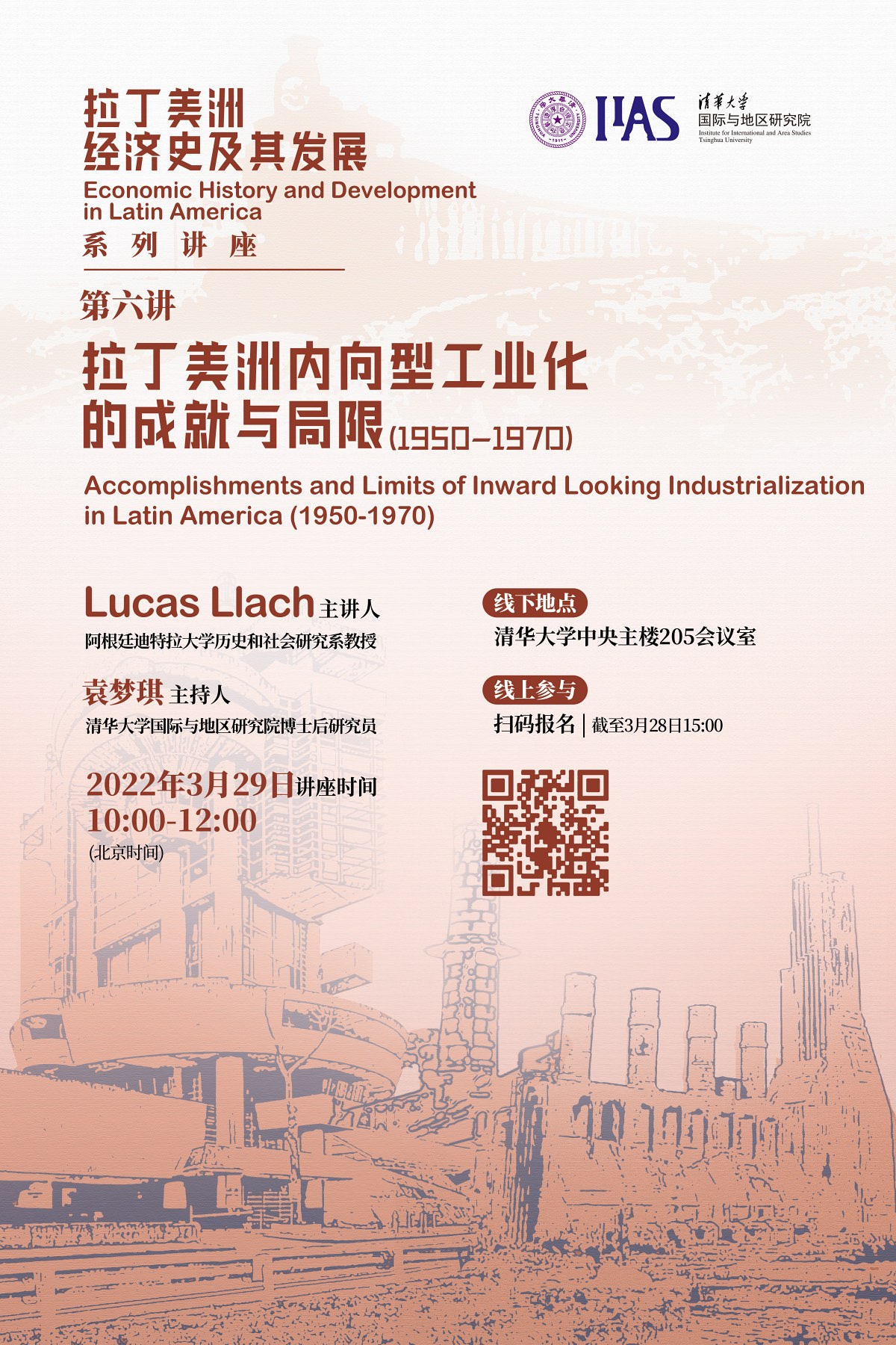 • 2022年3月29日上午,由h图书馆 主办的《拉丁美洲经济史及其发展》系列讲座迎来第六讲,讲座主题为“拉丁美洲内向型工业化的成就与局限(1950-1970)”。本系列讲座主讲人是阿根廷迪特拉大学历史和社会研究系教授卢卡斯·拉齐(Lucas Llach),本系列讲座主持人是地区研究院博士后研究员袁梦琪。