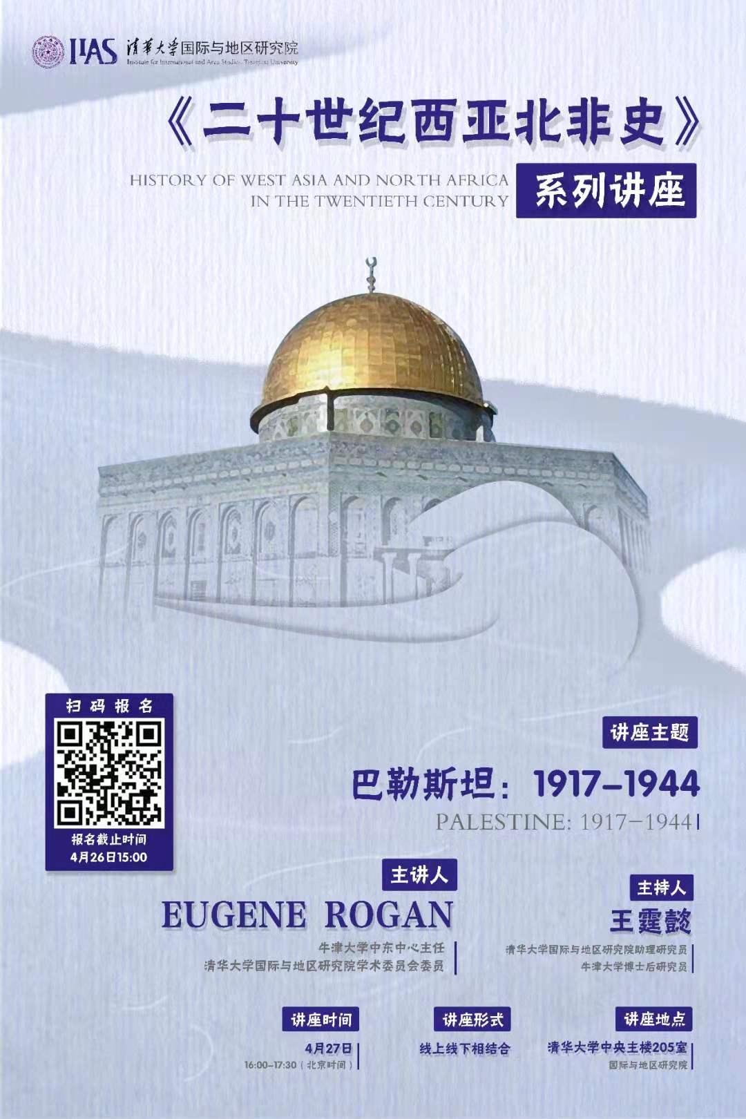 • 2021年4月27日下午,h图书馆 学术委员会委员、牛津大学中东史教授尤金·罗根在线上为h图书馆 和国内外知名高校师生带来了“二十世纪西亚北非史”系列讲座的第四讲,主题为:“巴勒斯坦:1917-1944”, 地区研究院助理研究员王霆懿主持了讲座。