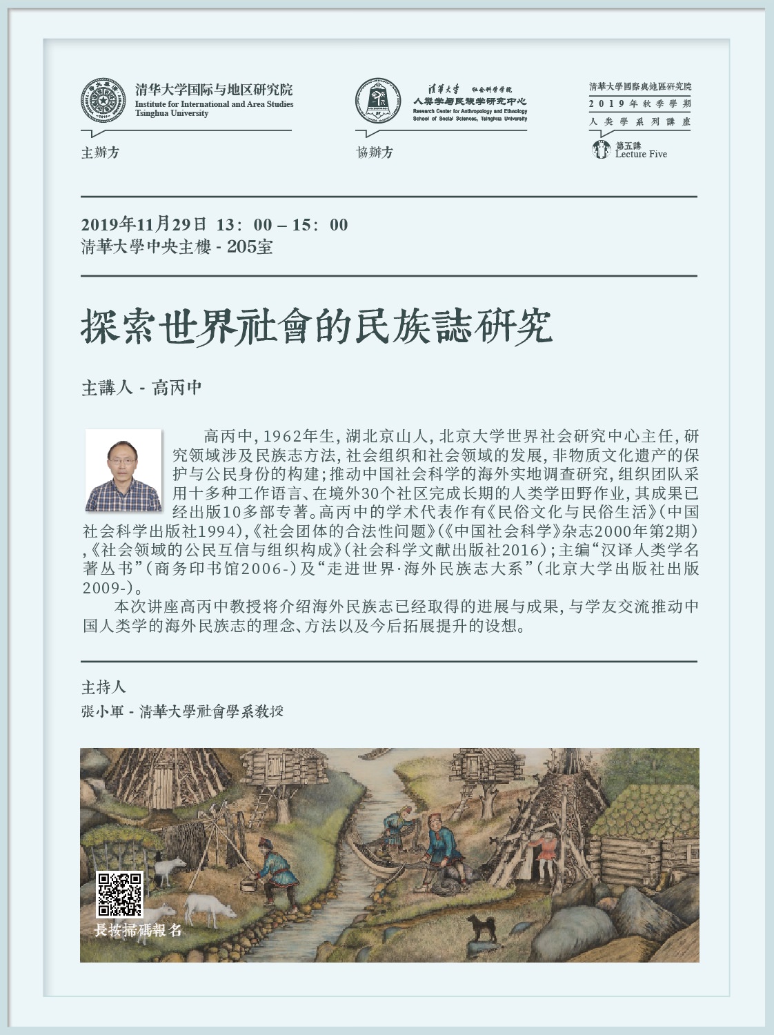 2019年秋季学期人类学系列讲座第五讲讲座,本讲的题目为“探索世界社会的民族志研究”。