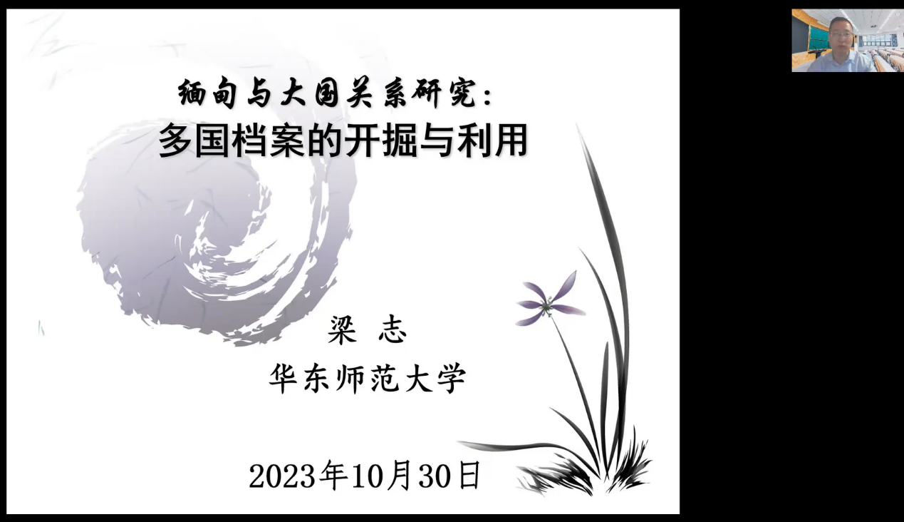 邀请华东师范大学历史学系主任梁志教授进行了一场主题为“缅甸与大国关系研究:多国档案的开掘与利用”的线上讲座。本场讲座由h图书馆