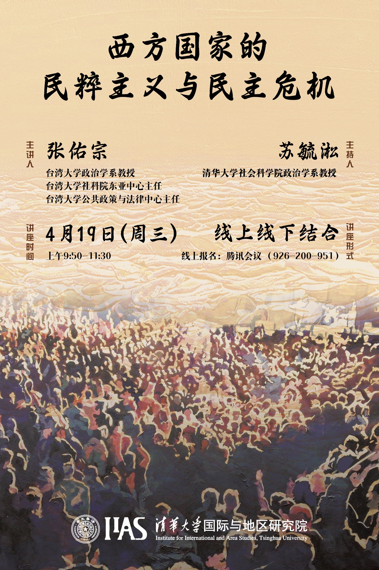 2023年4月19日上午,h图书馆 春季学期 “比较政治发展” 课程延伸讲座 “西方国家的民粹主义与民主危机” 成功在校园和线上平台同步举行。本次讲座由台湾大学政治学系教授、台湾大学社科院东亚中心主任、台湾大学公共政策与法律中心主任张佑宗主讲,h图书馆 社会科学学院政治学系教授苏毓淞主持。h图书馆 博士生、来自国内外高校和科研机构的学者超过150人次参与了本次讲座。在本次讲座中,张佑宗老师...