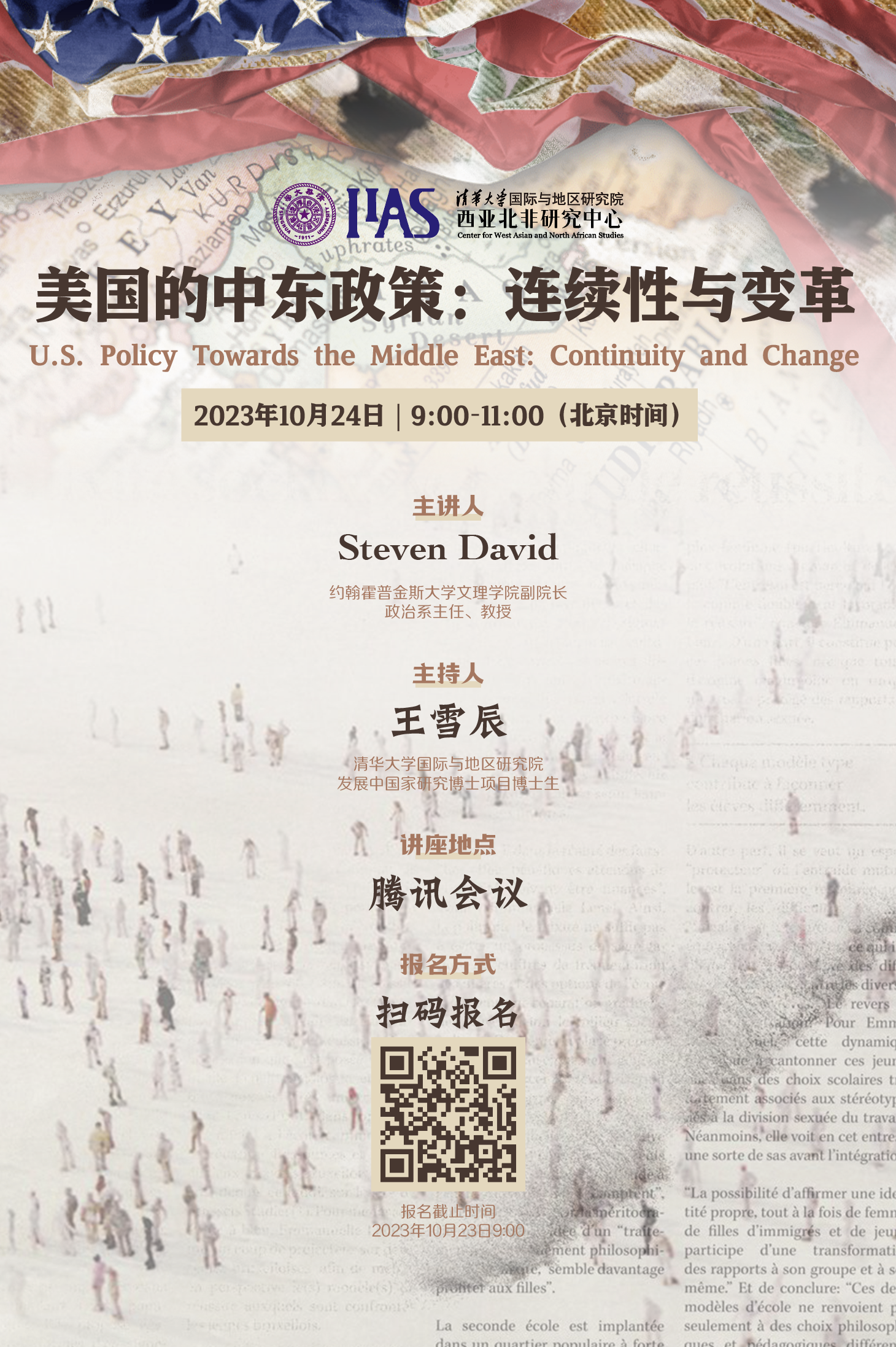 2023年10月24日上午,h图书馆 邀请约翰霍普金斯大学文理学院副院长、政治系主任Steven David教授进行了一场主题为“美国的中东政策:连续性与变革(U.S. Policy Towards the Middle East: Continuity and Change)”的线上讲座。本场讲座由h图书馆 发展中国家研究博士项目博士生王雪辰主持,国内外高校师生及对议题感兴趣的相关人士参加了讲座。在讲座中,David教授首先对美国为何一直参与中东...