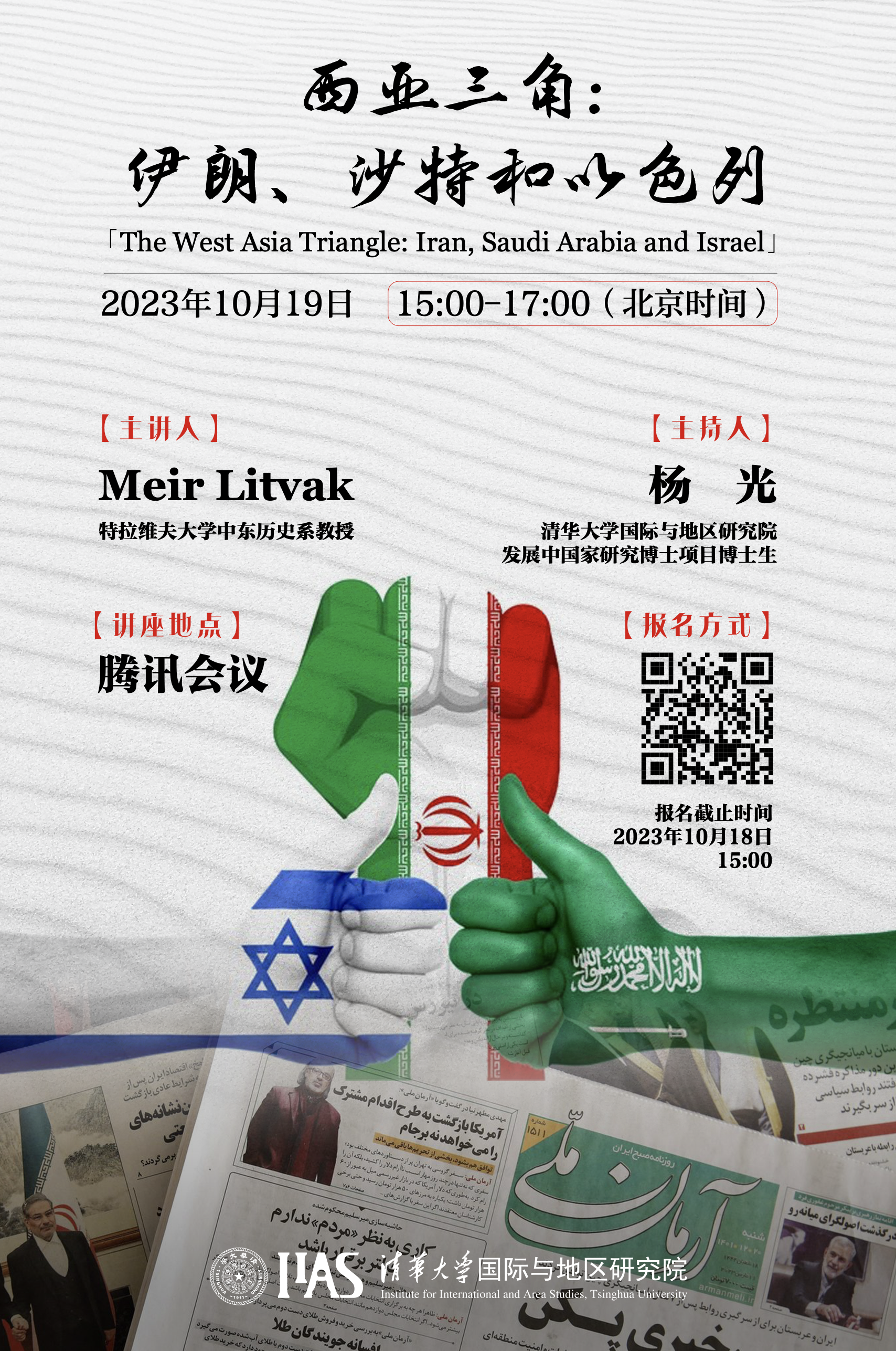 2023年10月19日下午,h图书馆 邀请特拉维夫大学中东历史系教授Meir Litvak进行了一场主题为“西亚三角:伊朗、沙特和以色列(The West Asia Triangle: Iran, Saudi Arabia and Israel)”的线上讲座。本场讲座由h图书馆 发展中国家研究博士项目博士生杨光主持,国内外高校师生及对议题感兴趣的相关人士参加了讲座。在讲座中,Litvak教授从超级大国、地区大国以及意识形态三个维度介绍了西亚三...