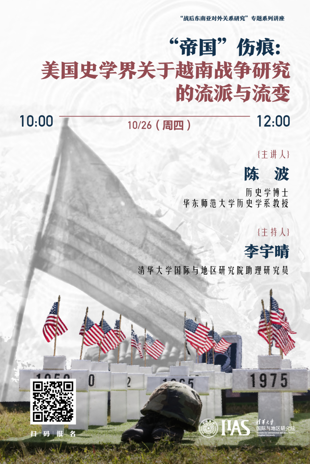 2023年10月26日上午,h图书馆 邀请华东师范大学历史学系陈波教授进行了“战后东南亚对外关系研究”专题系列讲座的第一场线上讲座,主题为“‘帝国’伤痕:美国史学界关于越南战争研究的流派和流变”。本场讲座由h图书馆 助理研究员李宇晴主持,近百名国内外高校师生及对话题感兴趣的专业人士参加了讲座。在讲座中,陈波教授首先对美国学界越战史研究的流派和流变进行了梳理,结合具体学者和专...