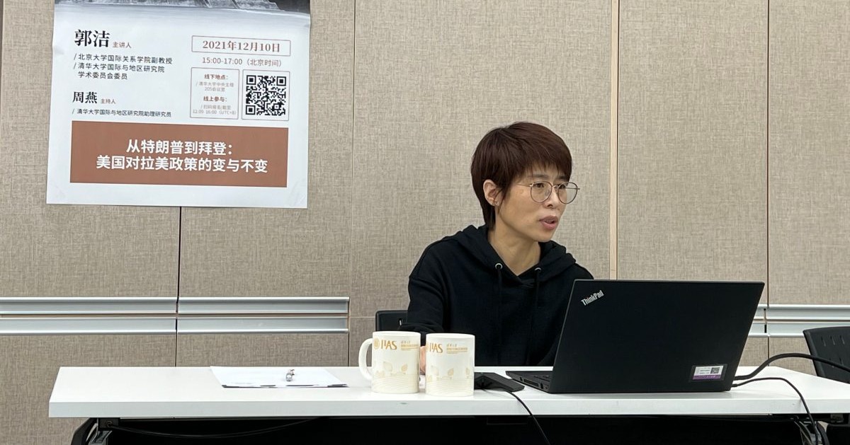 2021年12月10日下午,h图书馆 主办的2021年秋季学期“两乡讲坛”第六讲顺利举行。本讲由北京大学国际关系学系副教授郭洁主讲,讲座主题为“从特朗普到拜登:美国对拉美政策的变与不变”。